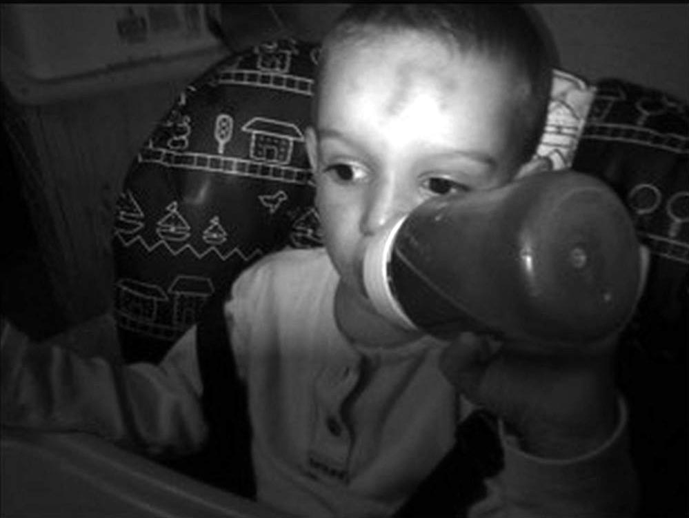 Stále jen polehával, plakal a koukal „nikam“. Po několika dnech tohoto apatického chování začal večer zničehonic obloukovitě zvracet a to několikrát za sebou…dala jsem ho do postýlky, teplotu měl 37,3 °C, za hodinu a půl měl již 39,2 °C. Hodně plakal a stále zvracel. Odvezla ho RZ a týden jsme byli v nemocnici. Diagnóza žádná, vyšetření žádné, příčina nezjištěna. 6 dní byl zavřený v postýlce nebo se mnou na posteli a jen apaticky a nepřítomně koukal…