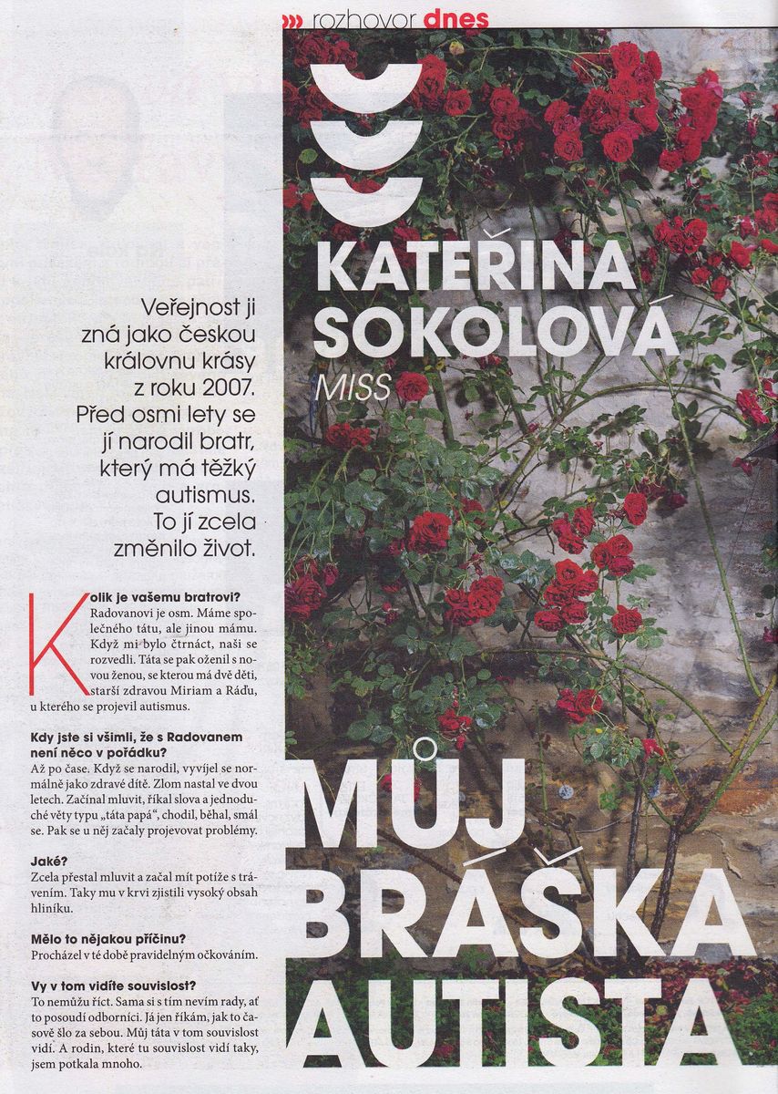 Miss ČR 2007 Kateřina Sokolová (27) pro Magazín DNES promluvila o autismu svého bratra Radovana (8). Nedokáže prý s určitostí říct, jestli postižení souvisí s očkováním, ale projevilo se právě po něm.