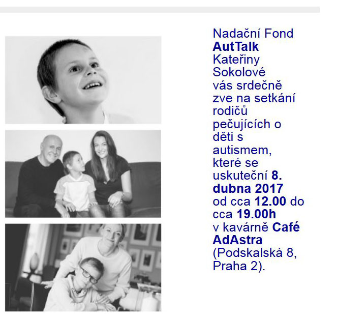 Těšíme se na další setkání s pečujícími rodiči, tentokrát v sobotu 8. dubna v Praze v kavárně AdAstra. Kavárnu provozuje společnost Zajíček na koni. Máme radost, že se Zajíčkem na koni můžeme spolupracovat, protože mimo spousty jiných zajímavých projektů např. zaměstnává autisty ve své kavárně. Účast na setkání je pro rodiče tradičně zdarma.